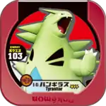 Tyranitar (Japanese: バンギラス Bangiras) is a Hyper class Tretta. It is part of the Gather! New Leaguers set.