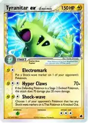 Tyranitar ex δ (Japanese: バンギラス ex δ Bangiras ex δ) is a Lightning-type Stage 2 Pokémon-ex card. It is part of the EX Dragon Frontiers expansion.