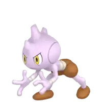Tyrogue is a humanoid Pokémon with a predominantly pale purple body and brown hips and feet that resemble short pants and shoes. It has three blunt protrusions on top of its head, yellow eyes, and circular sections on each side of its head that resemble protective padding. There are white bands resembling bandages on its torso and wrists. It has thin limbs, and its hands have three fingers each. Tyrogue is a male-only species with no female counterpart.