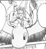 | Dragonite is Ultima's main mode of transportation, first seen when Red and Blue were battling on the Path of Battling and when Green's Ditty explained what happened to its Trainer. It appeared again in the Omega Ruby & Alpha Sapphire chapter watching as Ultima trains Sapphire and Emerald to Mega Evolve their Pokémon. She later uses it in a battle against Zinnia's Goodra, but loses.