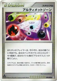 Ultimate Zone (Japanese: アルティメットゾーン Ultimate Zone) is a Stadium card. It was first released as part of the Arceus expansion.