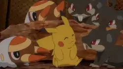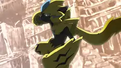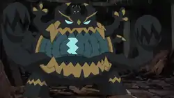 The Ultra Ruin first appeared in Battling the Beast Within!, where Ash and Pikachu were teleported there through a rift in space caused by a local Shiny Tapu Koko and the Tapu Koko from Ash's world, with both using Electric attacks at the same time. Shortly after arriving, Ash and Pikachu encountered a Guzzlord and were forced to run from it, being narrowly saved by a Trainer named Dia and his partner Zeraora. Dia explained that Guzzlord was responsible for the Ultra Ruin's destruction, having one day appeared in this world and attacked without provocation. With no one being able to stop it, everyone had been forced to evacuate. Later, Dia led Ash to his base, which Ash recognized as the ruins of the Pokémon School.