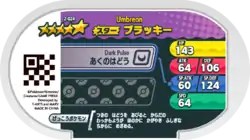 Umbreon (Japanese: ブラッキー Blacky) is a Grade 5 Pokémon Mezastar tag. It is part of the second set.