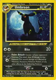 Bite is a move in the Pokémon games that Umbreon can learn, via prior evolution. Feint Attack is a move in the Pokémon games that Umbreon can learn. This card's Pokédex entry comes from Pokémon Silver, though it is slightly reworded in English.