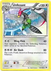 Unfezant (Japanese: ケンホロウ Kenhallow) is a Colorless-type Stage 2 Pokémon card. It is part of the Boundaries Crossed expansion.