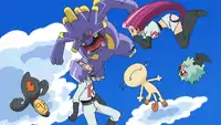 Team Rocket listened to on Emolga's conversation with Axew and found out that Emolga was pretending to join Team Rocket. Angry at Emolga for betraying them, the trio went to the cave that Exploud was sleeping in and captured it inside a mecha of theirs. Team Rocket returned to where Ash and his friends were and attempted to steal Pikachu. They brought out the giant box that contained Exploud and trapped Emolga and Axew in there, where they had to deal with Exploud's brutal attacks. With the help of Charizard and Dragonite, Emolga and Axew were freed, and Exploud and Team Rocket were defeated. When Ash and his friends left the island, Iris told the story about their adventure on there to Alexa.