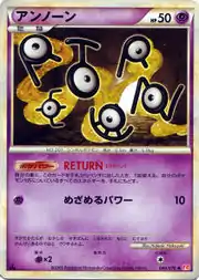 Return is a move in the Pokémon games that Unown cannot learn; however, the move and this attack are unrelated, as the Japanese names do not match. Hidden Power is a move in the Pokémon games that Unown can learn. This card's Pokédex entry comes from Pokémon HeartGold.
