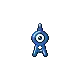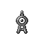 - While most Pokémon have a right-facing menu sprite that is a mirror image of their left-facing sprite, most forms of Unown are asymmetrical and have a unique sprite for both. The ones that do not are A, I, M, O, T, U, W, X, Y, and !.