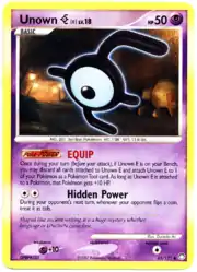 Hidden Power is a move in the Pokémon games that Unown can learn. This card's Pokédex entry comes from Pokémon Diamond.