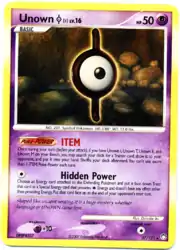 Hidden Power is a move in the Pokémon games that Unown can learn. This card's Pokédex entry comes from Pokémon Diamond.