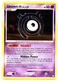 Unown M (Japanese: アンノーン M Unknown M) is a Psychic-type Basic Pokémon card. It was first released as part of the Mysterious Treasures expansion.