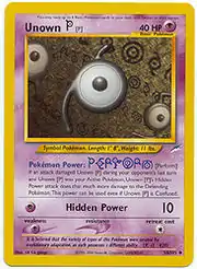 Unown [P] (Japanese: アンノーン [P] Unknown [P]) is a Psychic-type Basic Pokémon card. It is part of the Neo Destiny expansion.