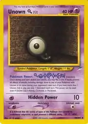 Unown [Q] (Japanese: アンノーン [Q] Unknown [Q]) is a Psychic-type Basic Pokémon card. It is part of the Neo Destiny expansion.