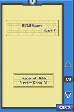 The Unown Report (Japanese: アンノーンノート Unknown Notebook) is a Key Item in Pokémon HeartGold and SoulSilver. It replaces the Unown Mode of the Pokédex in the Generation II games.