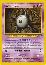 Unown [X] (Japanese: アンノーン [X] Unknown [X]) is a Psychic-type Basic Pokémon card. It is part of the Neo Destiny expansion.
