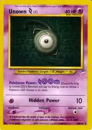 Unown [Z] (Japanese: アンノーン [Z] Unknown [Z]) is a Psychic-type Basic Pokémon card. It is part of the Neo Destiny expansion.