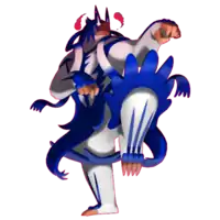Their Gigantamax forms may be inspired by fierce deities, transformed Buddhas with terrifying appearances yet noble hearts, that judge and punish the spirits of the dead, and additionally, quell evil. Alternatively, they might have been influenced by Nio, Agyō and Ungyō, a pair of viciously powerful Buddhist deities that ward off evil spirits and protect good spirits, as Urshifu is also capable of doing both. Typically, statues depicting Agyō will have its mouth open as a sign of violent aggression, as Rapid Strike Style attacks its foes relentlessly, while Ungyō keeps it mouth closed to represent latent strength, as Single Strike Style confidently delivers a single punch to a weak point. Additionally, the statues are often colored red and blue, though the color is not a prominent trait of either, as they can be each be red or blue, and sometimes both.