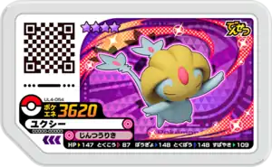 Uxie (Japanese: ユクシー Yuxie) is a Grade 4 Pokémon Ga-Olé disk. It is part of the fourth Ultra Legend set.