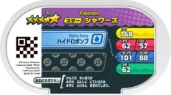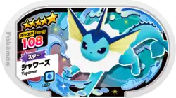 Vaporeon (Japanese: シャワーズ Showers) is a Grade 5 Pokémon Mezastar tag. It is part of the first set.