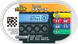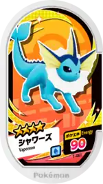 Vaporeon (Japanese: シャワーズ Showers) is a Grade 4 Pokémon Mezastar tag. It is part of the first set.