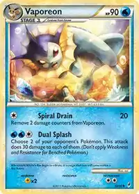 Vaporeon (Japanese: シャワーズ Showers) is a Water-type Stage 1 Pokémon card. It was first released as part of the Undaunted expansion.
