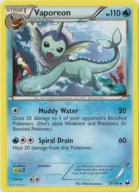 Vaporeon (Japanese: シャワーズ Showers) is a Water-type Stage 1 Pokémon card. It was first released as part of the Dark Explorers expansion.