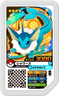 Vaporeon (Japanese: シャワーズ Showers) is a Grade 3 Pokémon Ga-Olé disk. It is part of the first Grand Rush set.