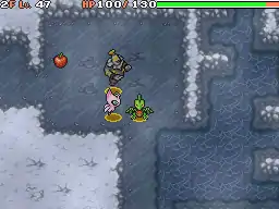 This is the stage before the second battle with Primal Dialga. Leading up to this stage, Grovyle is rescued from near-elimination by Dusknoir in a ploy by the latter to return back to the past; after Dusknoir saves Grovyle, Primal Dialga appears and thrashes Dusknoir about. Just when Primal Dialga is about to finish Dusknoir off, an aurora appears above all of the characters, and wind begins to blow, signifying that time is finally beginning to flow again, due to the heroic efforts of the player and player's partner in the past. The returning flow of time causes Primal Dialga to go berserk and charge headlong toward the Passage of Time at the summit of Vast Ice Mountain; the consequences of the Passage of Time's destruction are unknown but potentially devastating to time itself. Thus, the team of Grovyle, Dusknoir, and Celebi leave behind the four Sableye (who would only hold them back and slow them down if they came) and quickly traverse up Vast Ice Mountain.