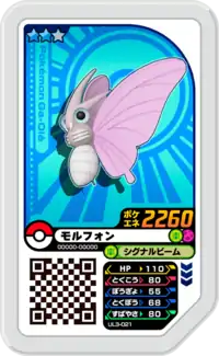 Venomoth (Japanese: モルフォン Morphon) is a Grade 2 Pokémon Ga-Olé disk. It is part of the third Ultra Legend set.