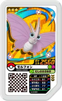Venomoth (Japanese: モルフォン Morphon) is a Grade 3 Pokémon Ga-Olé disk. It is part of the third Ultra Legend set.