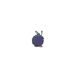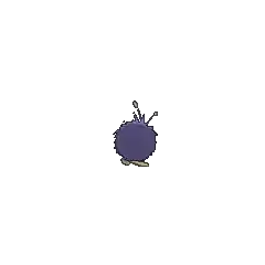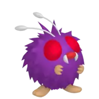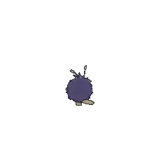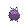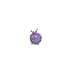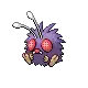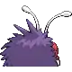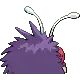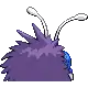 Venonat is an insectoid Pokémon with a spherical body covered in purple fur. The fur releases a toxic liquid and it spreads when shaken violently off their bodies. A pink pincer-like mouth with two teeth, stubby forepaws, and a pair of two-toed feet are visible through its fur. Its limbs are light tan. There is also a pair of white antennae sprouting from the top of its head. However, the most prominent feature on its face are its large, red compound eyes. Venonat's highly developed eyes act as radar units and can shoot powerful beams.