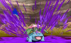 | The center of Mega Venusaur's flower glows white. It then fires multiple dark purple blobs of poison from its flower at the opponent. | |||