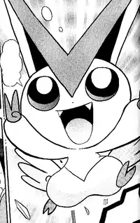 In Pikachu, What's This Key?, Pikachu and his friends visited a Victini courtesy of Klefki's keys. It rescued Pikachu and brought him back to safety as he was falling into a chasm.