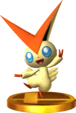 Victini appears as a Poké Ball Pokémon, after playing 100-Man Smash at least once. It uses Victory Star, which causes fighters (and teammates, if any) who send it out to gain immunity to knockback and have their attack power boosted.