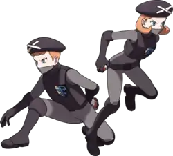 Villainous teams in the core series have many aspects in common. Their structure generally includes, in order of rank, a leader, one or more admins and a number of anonymous grunts. Some teams have additional levels of authority within them, such as Team Flare's scientists, as well as additional members and associated individuals who do not fit into the hierarchy at all, such as Gladion, who works with Team Skull.