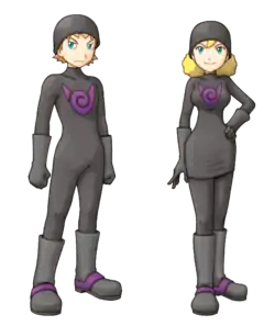 Team Plasma is the villainous team of the Unova region. Originally, the grunts wore a costume that resembles a knight's armor, while the Seven Sages wore robes. Their objective is to separate humanity from Pokémon. Their leader is N, although the team is being used to further the goals of his adoptive father, Ghetsis. After this is discovered, the members of Team Plasma that support Ghetsis change their uniform to be more similar to pirates, while those that support N remain in the old uniform. Their crest is the letters P and Z combined together, looking like the Chi Rho.