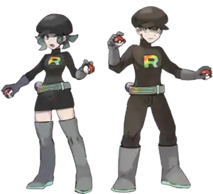 Team Rainbow Rocket is a villainous team that appears in the Alola region. Members wear black uniforms that are similar to those worn by the original Team Rocket, but the red "R" logo on the uniform's front has been replaced by a rainbow "R" logo. Their leader is Giovanni.