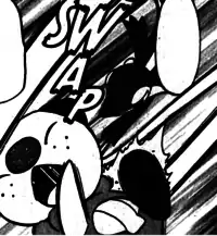 | Pansage holds its tail in its hand and a white vine comes out from the middle of the end of its tail and Pansage hits the opponent with it. | |||