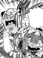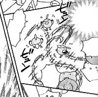 | Two light green vines come out from each side of Chespin's head and it hits the opponent with them. | |||
