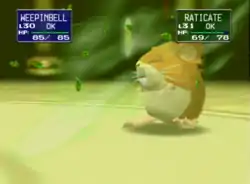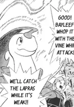 | Bayleef strikes the foe with its vines coming out from the upper body. | |||