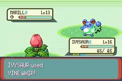 A single vine comes out of the side of the flower stem on Ivysaur's back and strikes the opponent. | ||