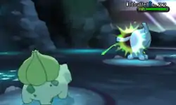 Bulbasaur releases four vines with thorns on them out from underneath the bulb on its back at the opponent. | ||