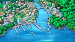 Virbank City debuted in An Epic Defense Force!, when Ash and his friends arrived at the city port. Like in the games, the city has an existing movie studio and a recently built amusement park. The group met Luke again as he was visiting the city to participate in the Pokéstar Studios Film Competition. After being persuaded by Cilan, the group decided to help Luke in the making of his film, which won Best Picture.