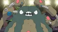 | Garbodor was the third and last Pokémon Roxie used against Ash in their Gym battle. It defeated Ash's Pignite and Palpitoad, but was later defeated by Pikachu after getting paralyzed by his Static Ability.