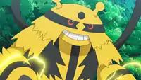 Electivire reappeared in Living on the Cutting Edge!, where it and Pangoro showed off the strength of Viren's new golden safe at his orders. Electivire's known moves are Thunder Punch, Thunder, and Rain Dance. | ||