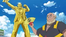 Even when his business plans supposedly do not involve corrupt or illegal actions, he shows incredibly high vanity. He planned to build a large golden statue of an athletic version of himself as the centerpiece of a hotel he had under construction, and when the statue became attached to the top of a wild Stakataka, Viren interfered with the Ultra Guardians' work in an attempt to protect the statue from sustaining damage.