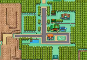 In Generation VII, the TM-giving man in the southwest part of town can no longer be reached via the pond to his right and can only be accessed by using the Secret Technique Chop Down.