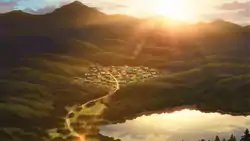 The City of Evergreen (Japanese: えいえんなる みどりの まち The eternally green town.)