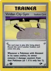 Viridian City Gym (Japanese: トキワシティジム Tokiwa City Gym) is a Stadium card. It is part of the Gym Challenge expansion.