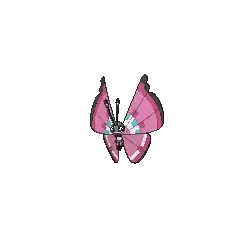 While Vivillon's wings come in a wide variety of colors and patterns, they always have black edges and pixelated markings. Its wings' pattern is affected by the climate in which it lives. It can spread its scales to calm an opponent's fighting spirit, as shown in the anime. Vivillon is the only known Pokémon capable of learning Powder by level-up.